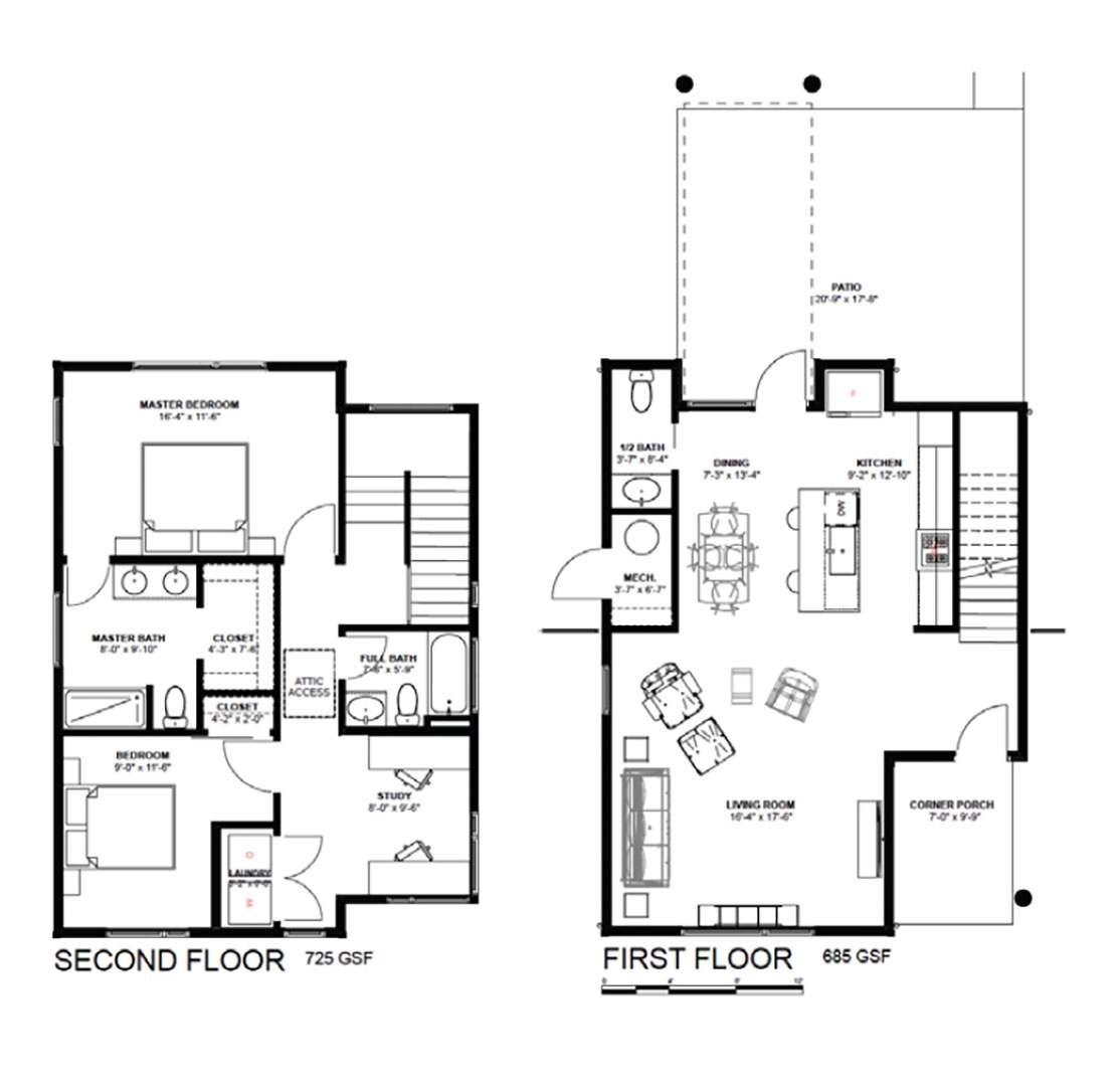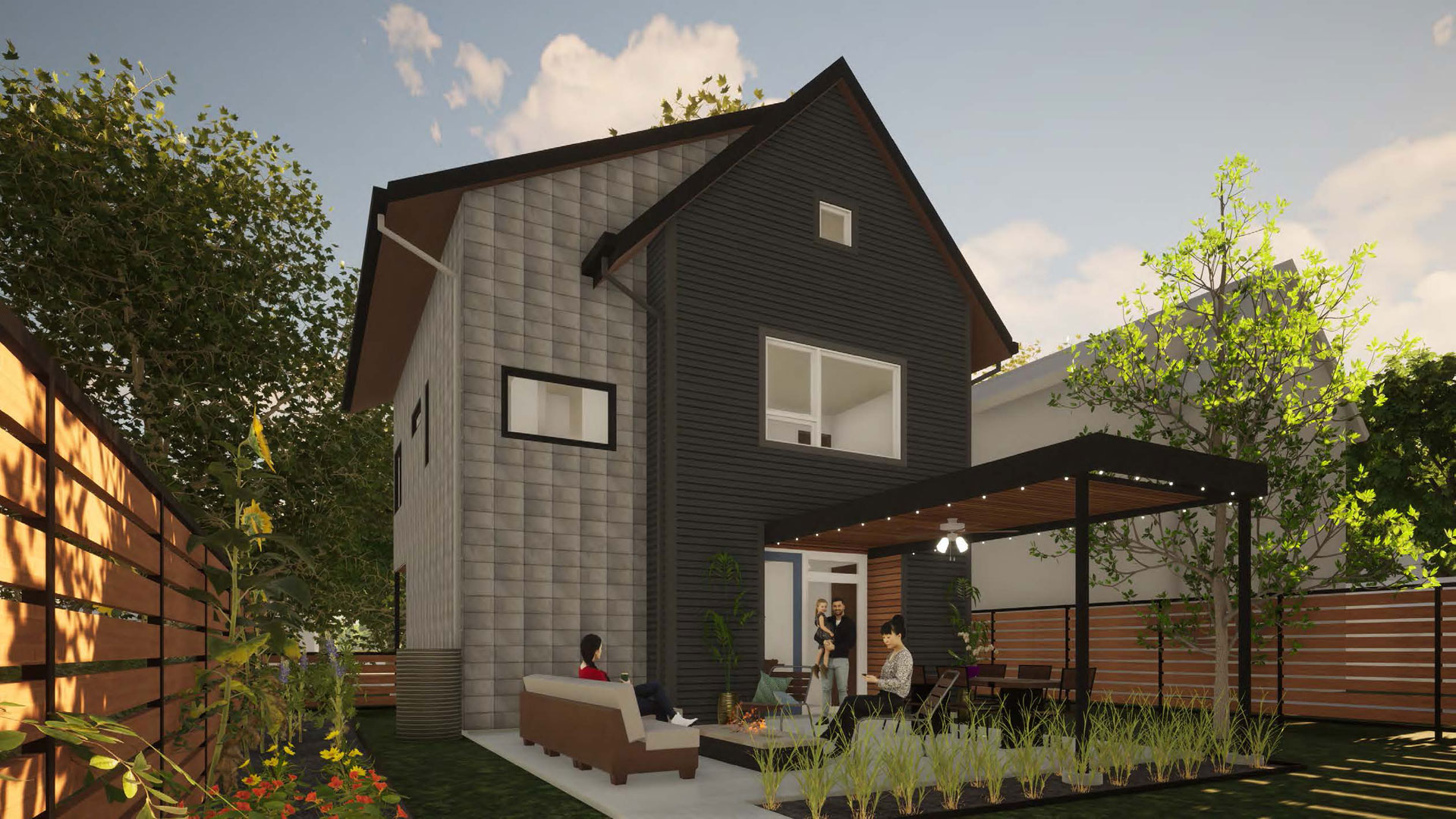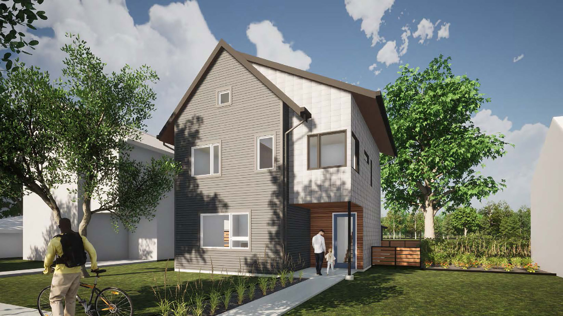 The downtown Columbus Park neighborhood is comprised of homes that engage with sidewalks and have a desirable traditional scale and form. The front of the new home is designed to complement the neighborhood and be inviting with a large front porch. The first floor plan is an open layout connected to the front and back yards. Focusing on energy efficiency, the home designs will utilize Advanced Wall Framing, a ventilated roof, radiant heated slab on grade, outsulation of the entire envelope, pressure equalized rain screen veneer and an HRV ERV mechanical system.